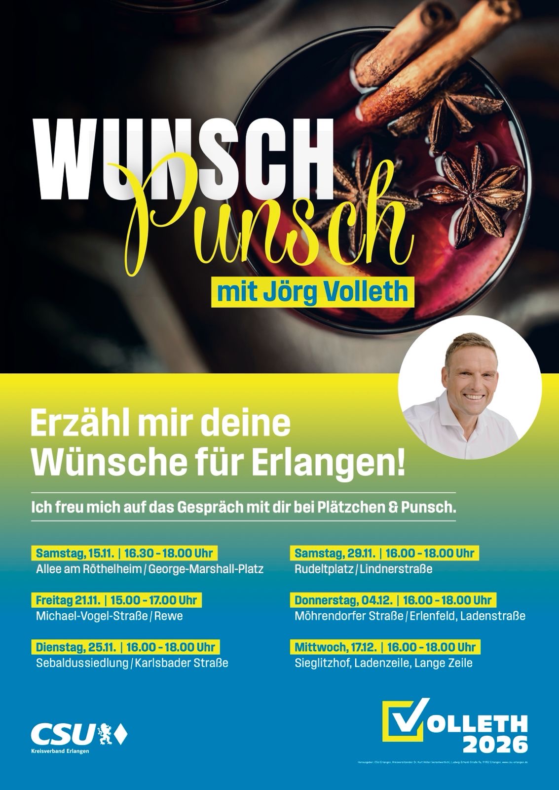 Unser OB-Kandidat, Jörg Volleth, kommt am 29.11. mit seiner "Wunsch & Punsch"
